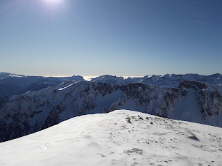 Un cop al cim , a 2.762 metres d'alçada, després de 4 hores i 15 minuts d'ascensió, les vistes són espectaculars cap a tot arreu. Cap al nordoest, part de la cresta de la Munia: